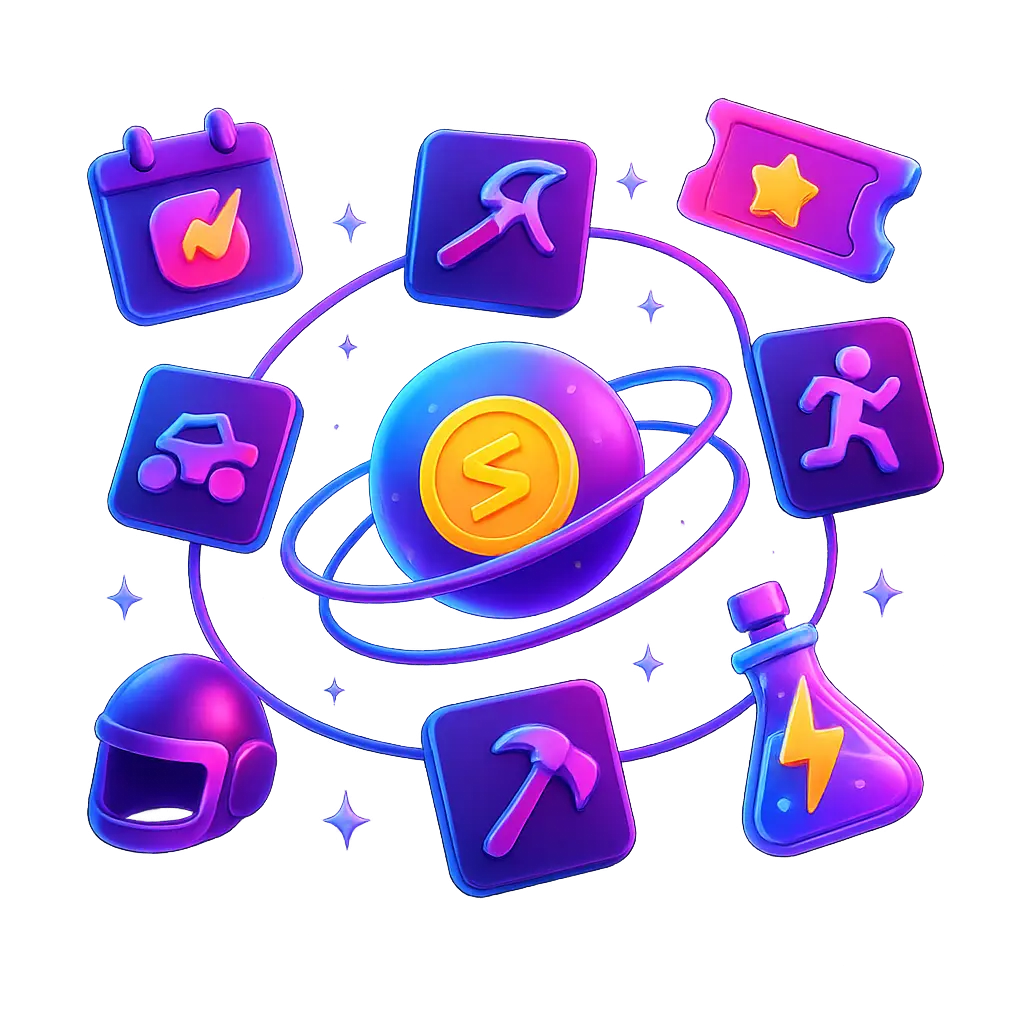 Play daily, enter events, and use cross-game items that boost performance and fun.
